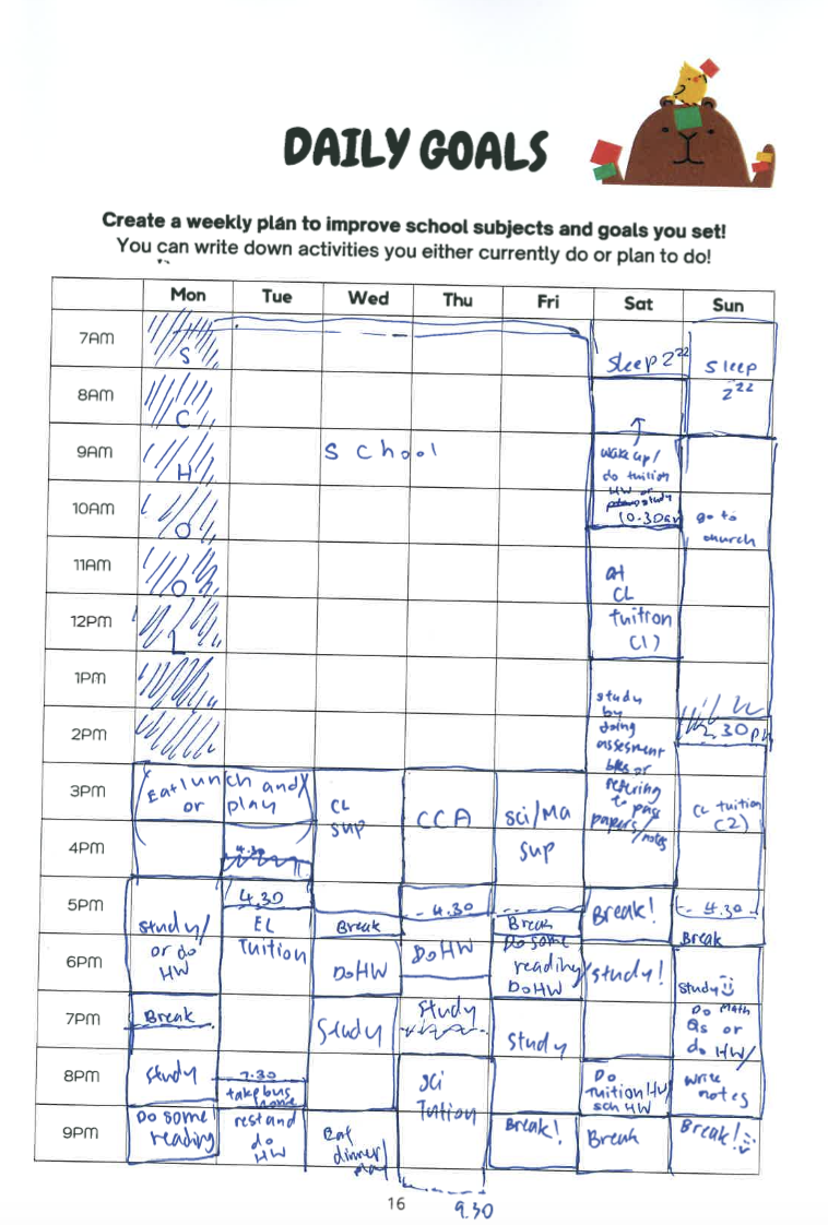 - children usually do not plan their schedule/ task list, usually memorise their home works
