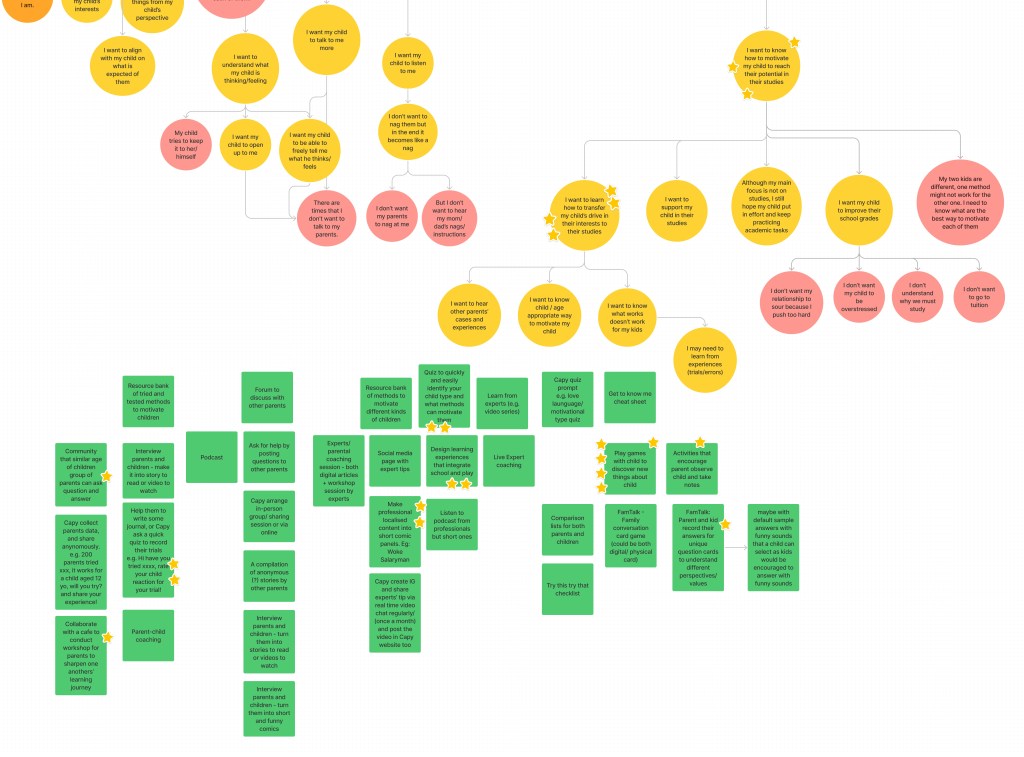 Based on the outcome, we defined a few opportunities based on our research, and organized them into a tree structure.